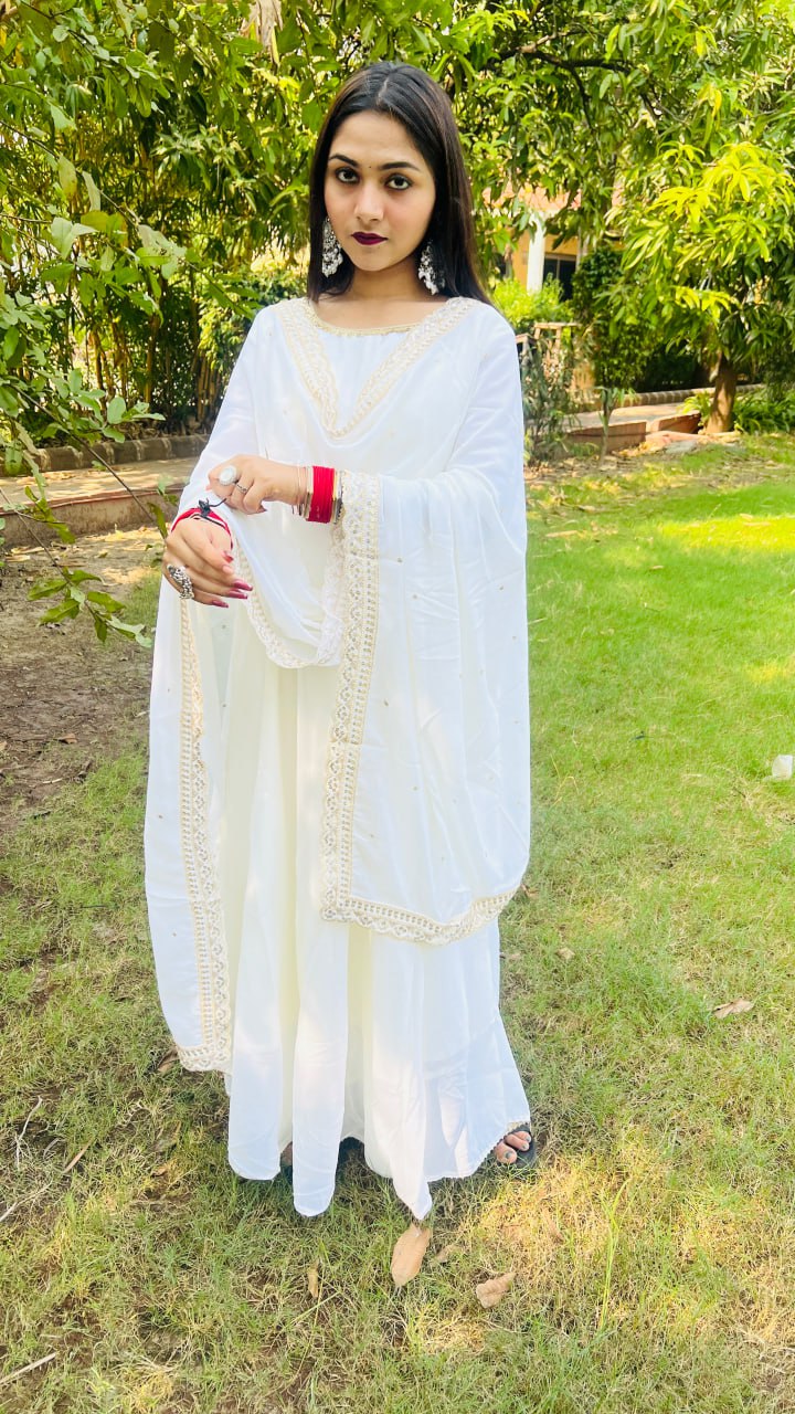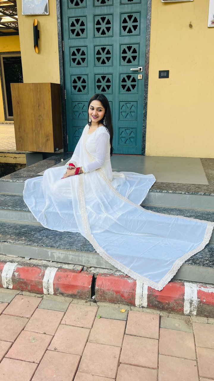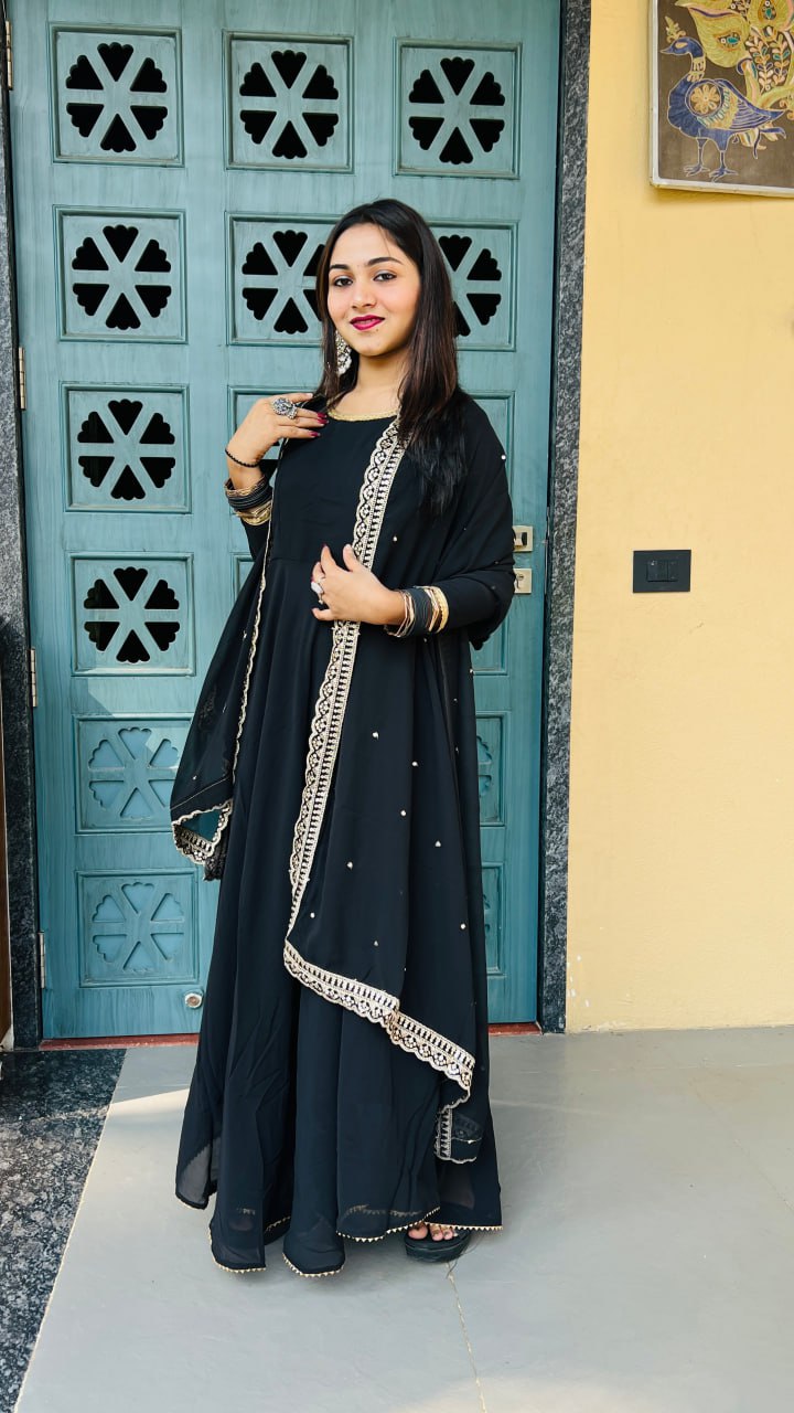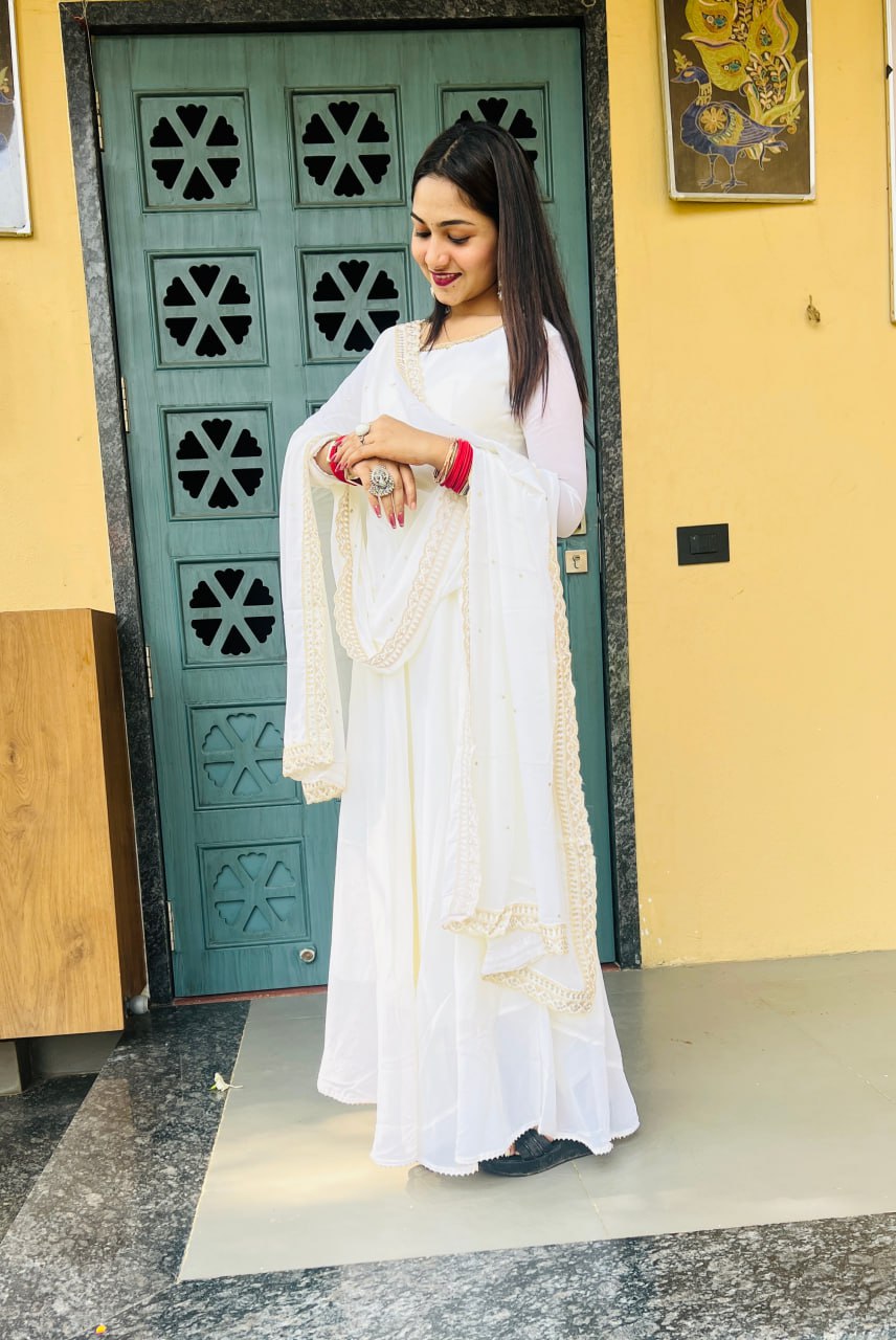 #GeorgetteGown #LaceElegance #EthnicFashion
