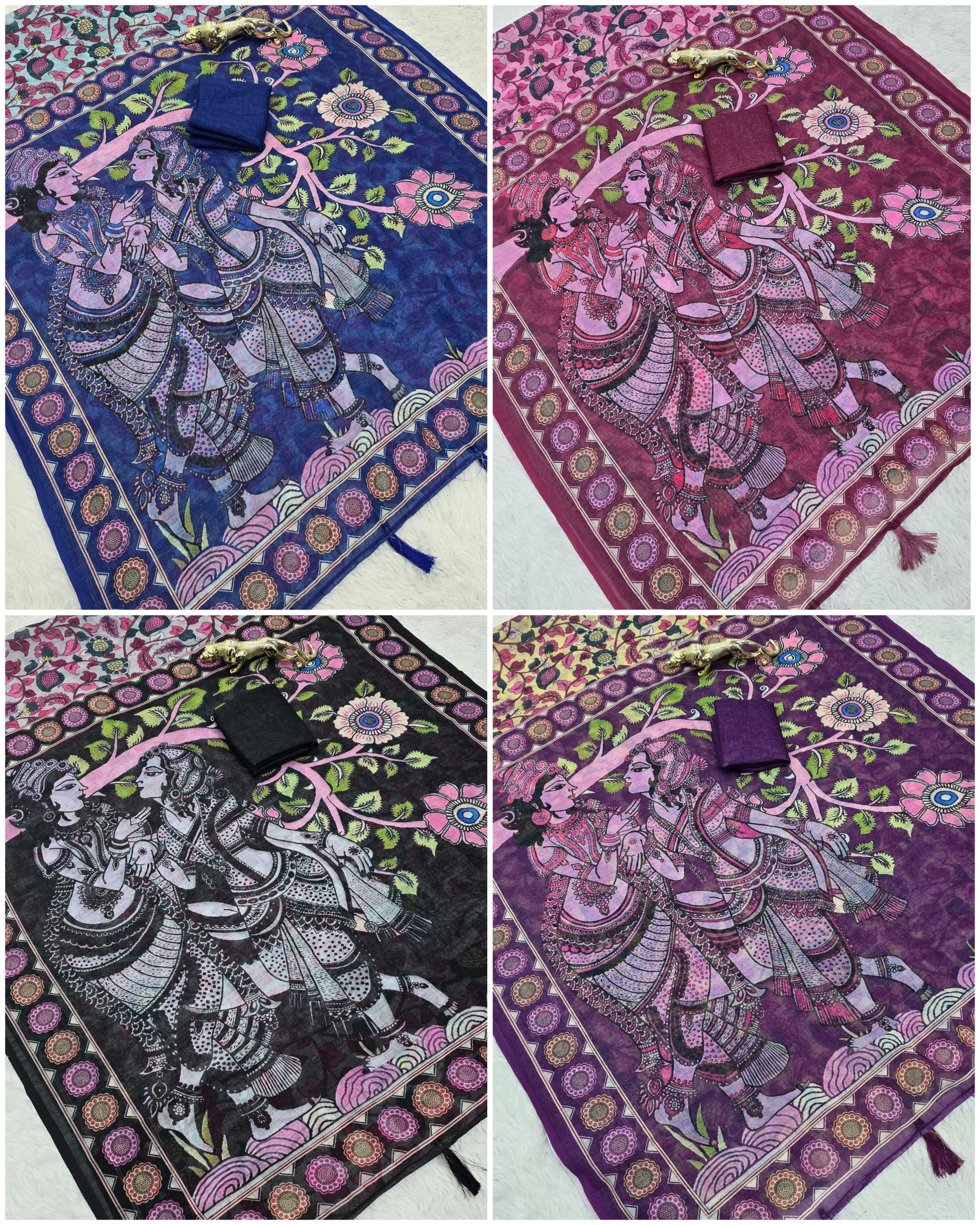 ✨ Premium Lilan Cotton Digital Print Saree (4 Colors Available) ✨