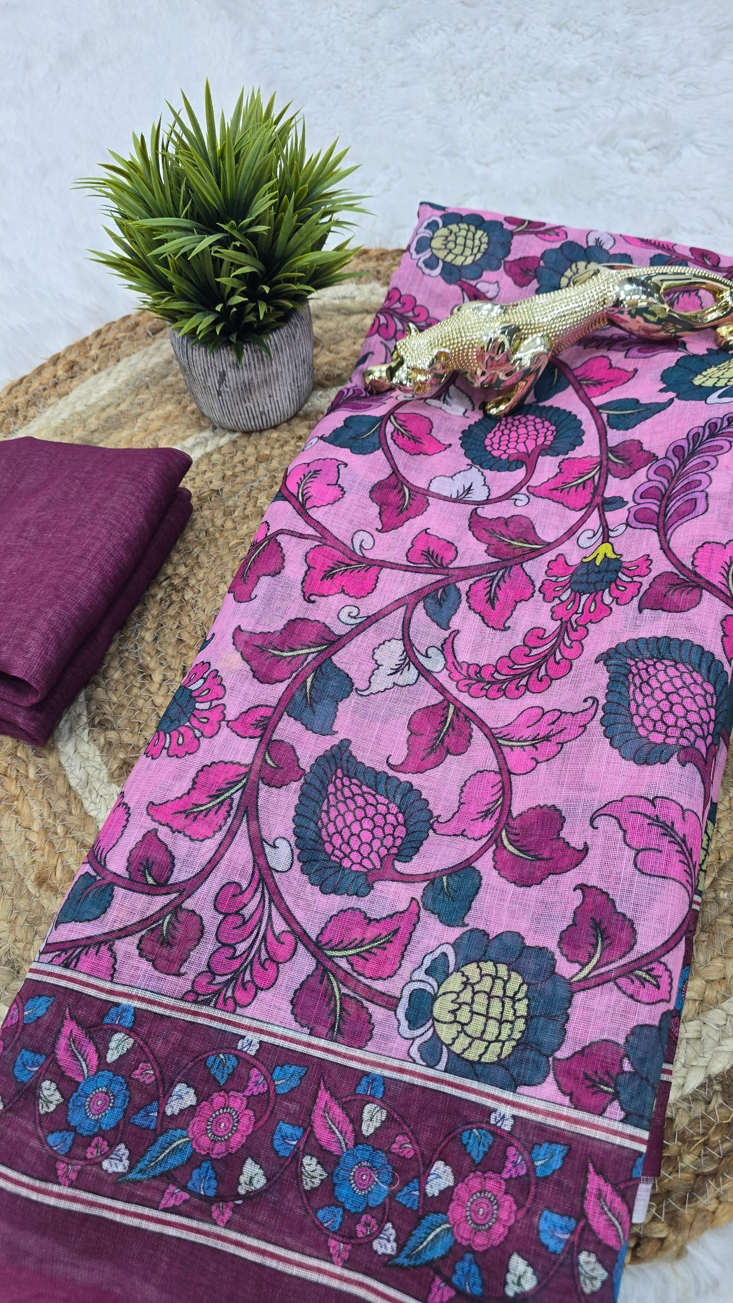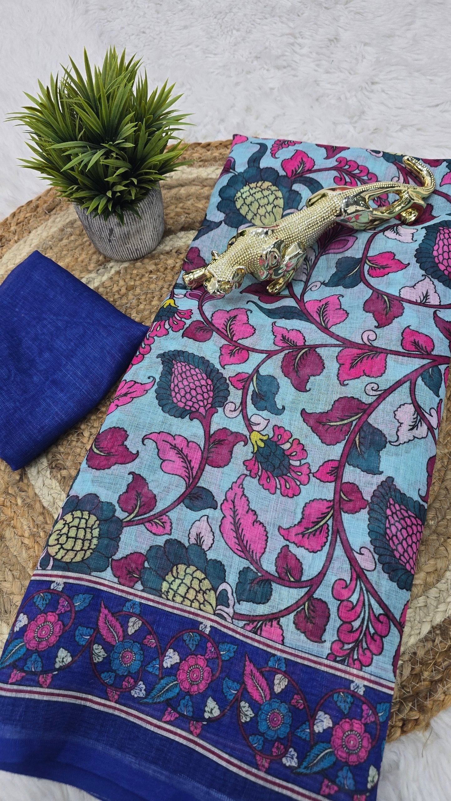 *💠 Blouse Fabric:* Matching Lilan Cotton with Digital Print
