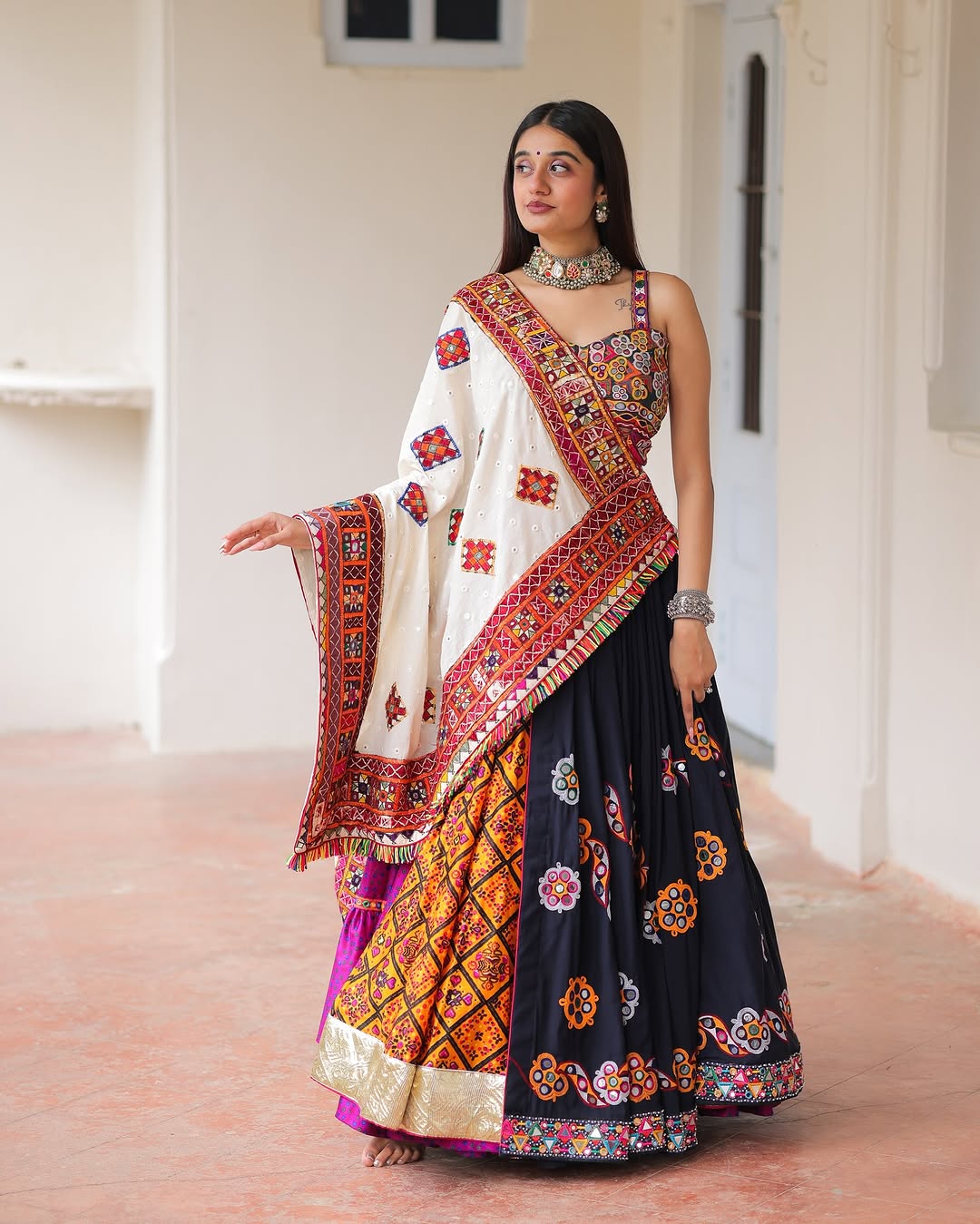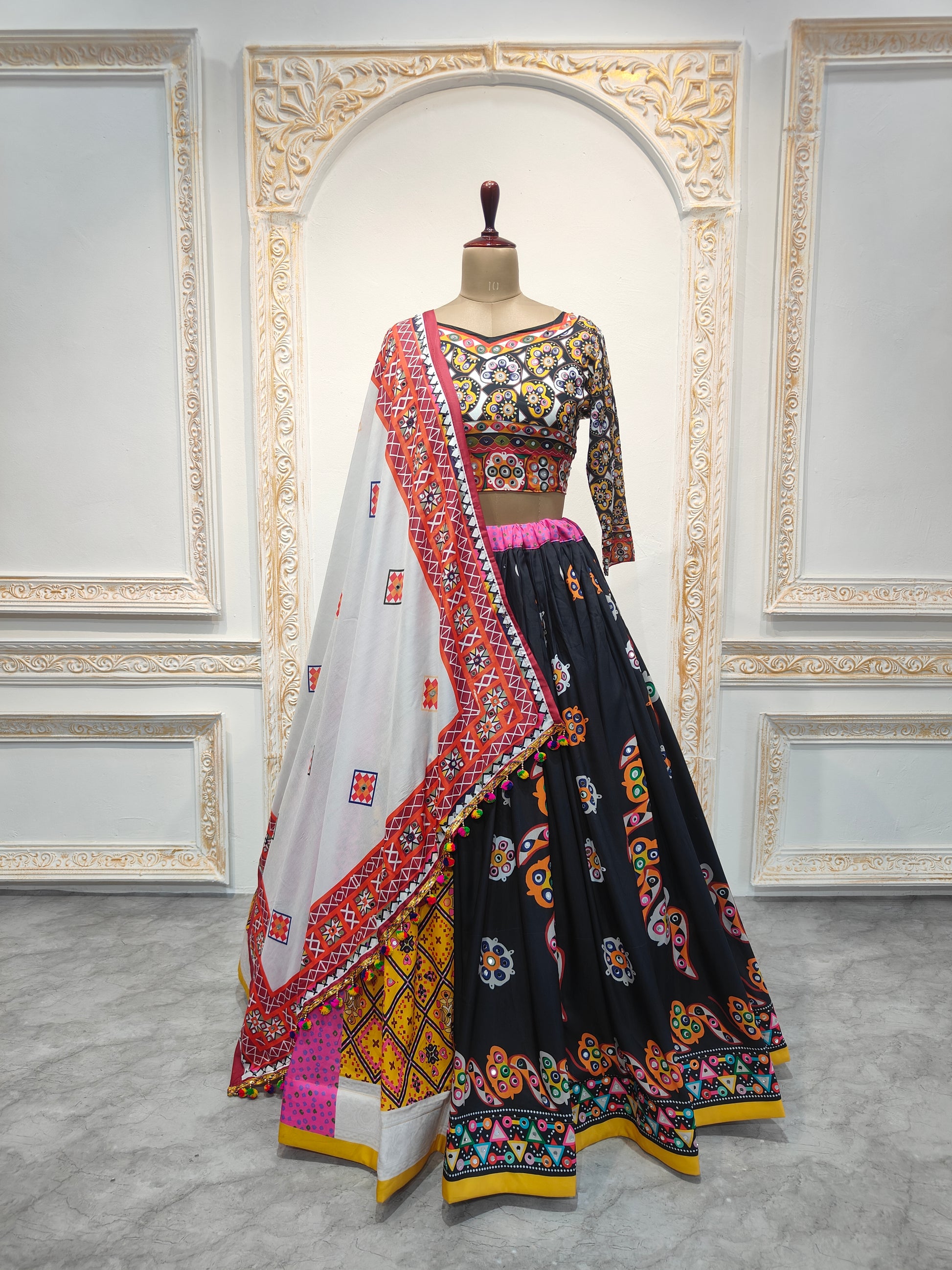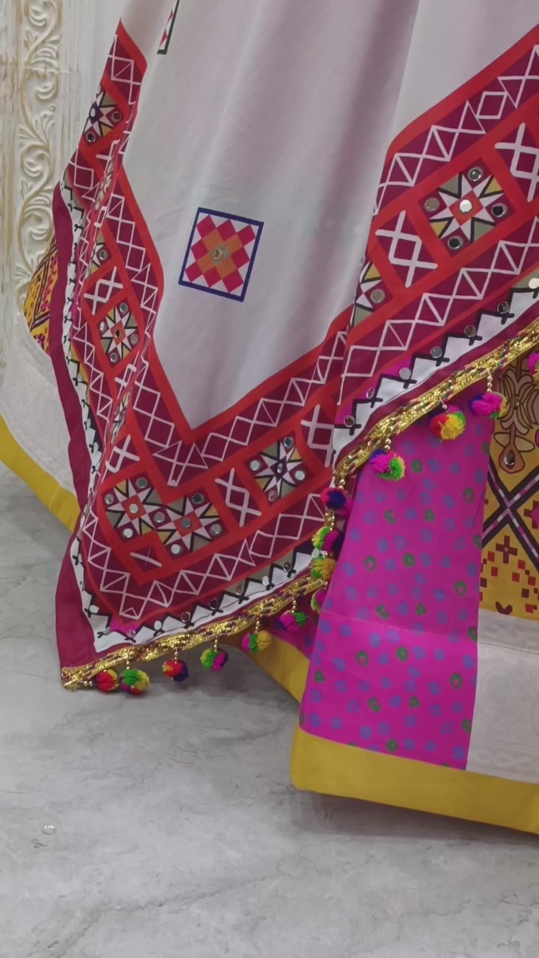 Work : Beautiful Digital Print Work & Real Mirror Work With Fancy Latkan Lace