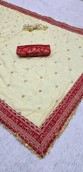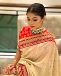 Chinon Silk Saree with Red Embroidery Border