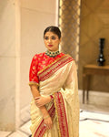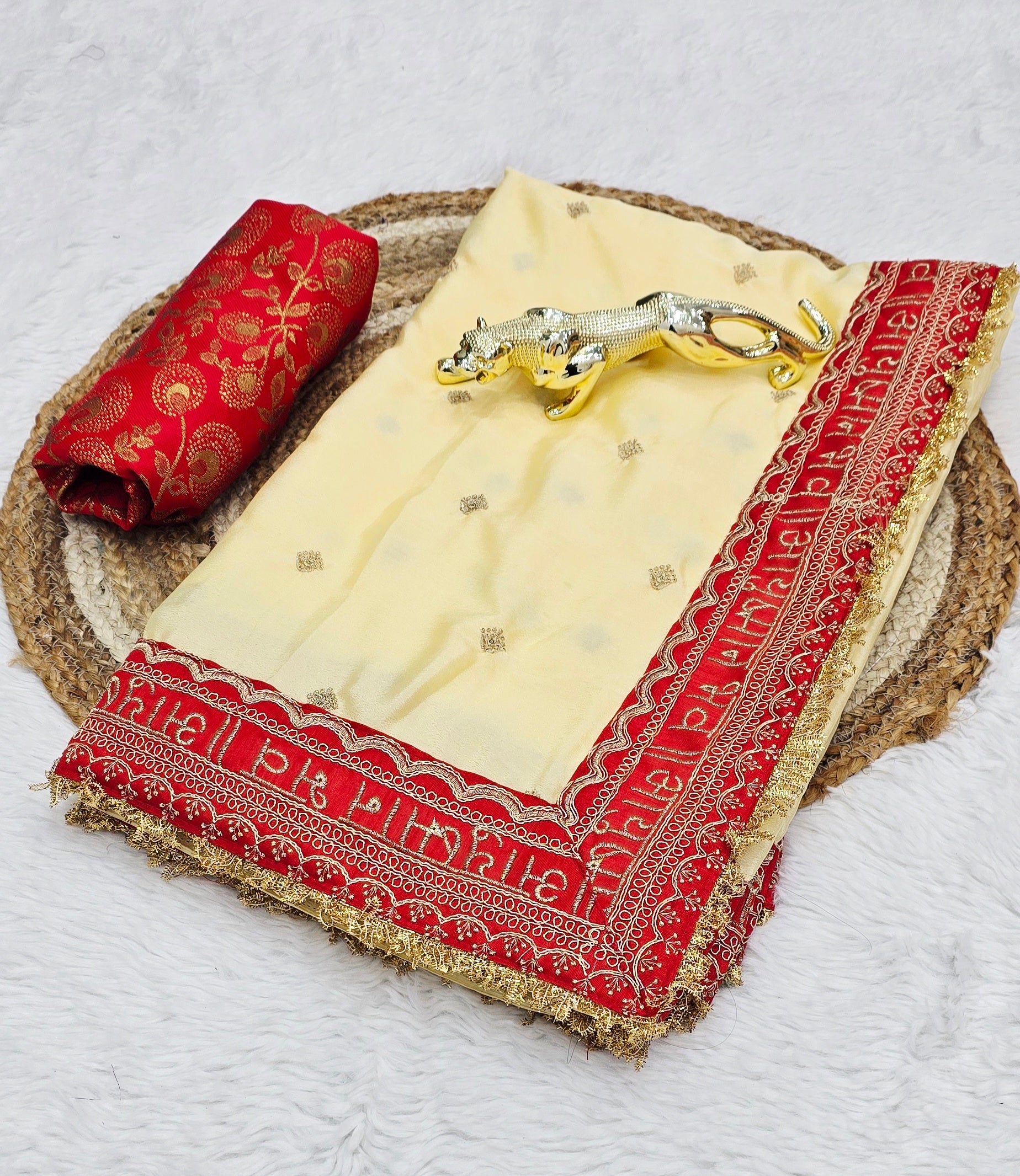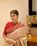 *Elegant Chinon Silk Saree with Red Embroidery Border | Traditional Festive Wear Saree with Designer Jacquard Blouse Piece*