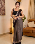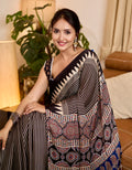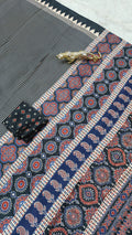 *Ajrakh Print Border with Ajrakh Rich Pallu With Contrast Blouse*