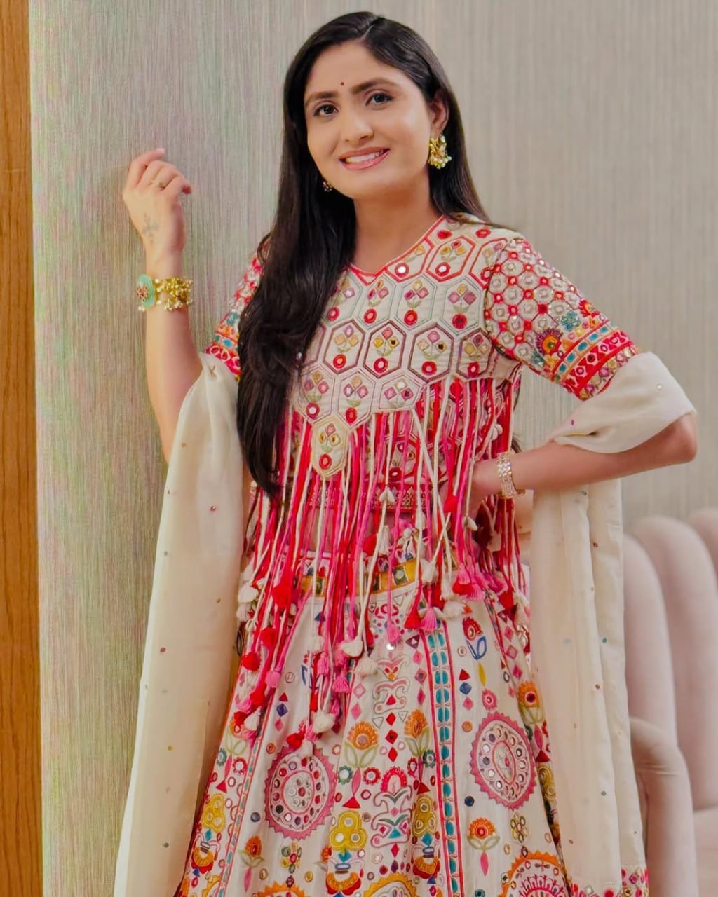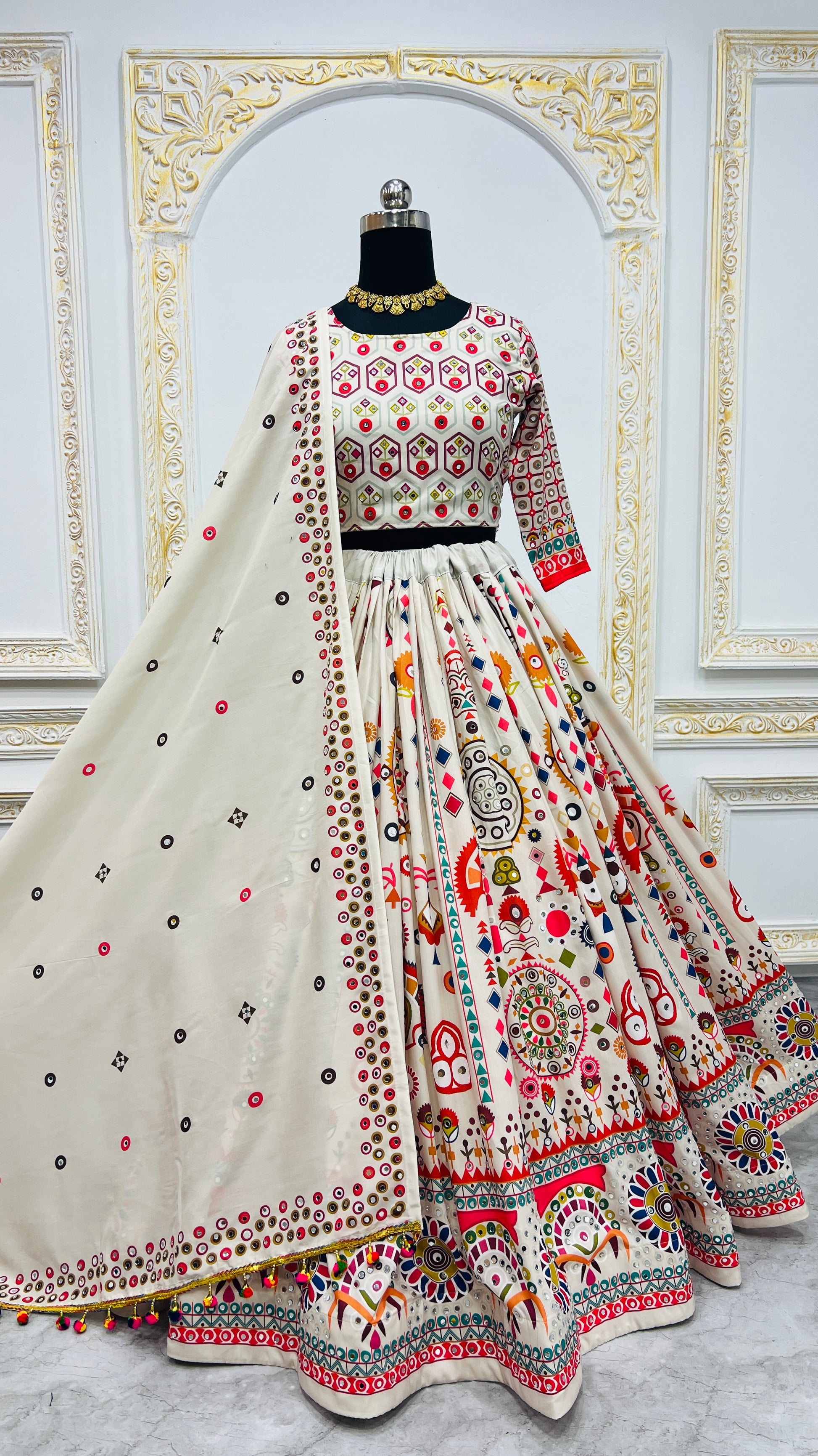 Work : Fancy Digital Print Work & Real Mirror Work With Fancy Latkan Lace